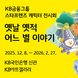[FETV=권현원 기자] KB국민은행이 오는 31일까지 기업뱅킹 신규 가입 개인사업자를 대상으로 ‘사장님 Welcome KB금융쿠폰 이벤트’를 실시한다. 6일 KB국민은행에 따르면 이벤트 기간 동안 KB스타기업뱅킹 또는 기업인터넷뱅킹을 통해 기업뱅킹에 신규 가입한 개인사업자 고객은 예금, 적금, 해외송금 거래 시 바로 사용할 수 있는 ‘사장님 Welcome KB금융쿠폰’ 패키지를 자동으로 받을 수 있다. 제공되는 쿠폰은 ▲정기예금 100만원 이상 가입 시 1만원권 ▲’KB사장님+적금’ 10만원 이상 가입 시 1만원권 ▲해외송금 5만원 이상 이용 시 5000원권으로 사용할 수 있도록 구성돼 있다. 발급된 쿠폰은 KB스타기업뱅킹에서 확인할 수 있으며, 동일 상품에 대한 중복 사용은 불가하다. 쿠폰 발급 안내는 고객에게 LMS 문자로 자동 발송될 예정이다. KB국민은행 관계자는 “개인사업자 고객의 금융 편의를 높이기 위해 이번 이벤트를 마련했다”며, “앞으로도 고객의 다양한 수요에 맞춘 맞춤형 금융 혜택과 서비스를 지속적으로 제공하겠다”고 전했다.