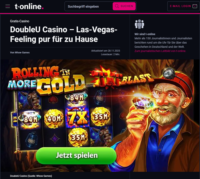 ‘T-Online’은 월간 수천만 명의 방문자를 보유한 독일 주요 뉴스 포털로, 게임 서비스 채널인 ‘T-Online Spiele’를 통해 캐주얼·슬롯·카지노 등 다양한 장르를 제공하고 있다.