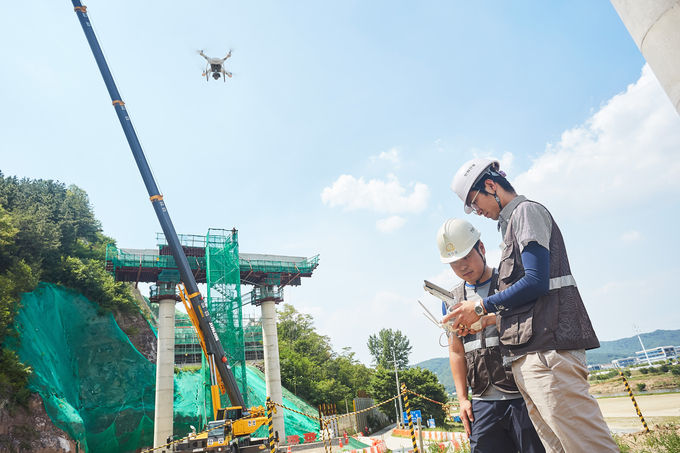 대표적인 현장이 대구외곽순환고속도로 제1공구 건설현장으로, 금호대교를 포함해 총 5.11km에 달하는 고속도로를 건설하는 사업이다. 이 현장은 넓은 사업구간의 안전관리를 효과적으로 진행하기 위해 드론을 도입했다. 특히 폭이 좁아 작업자 외 다른 인원이 올라가기 힘든 교량 상부 공사는 드론을 띄워 안전 점검을 진행하는 등 현장 특성에 맞는 안전 해법을 발굴하고 있다. 또 추락 사고 위험을 예방하기 위해 근로자 신규 교육과 정기 교육 때마다 VR(가상현실) 기기를 활용해 위험한 상황을 시뮬레이션하며 안전의 중요성을 직접 느끼게 하고 있다.