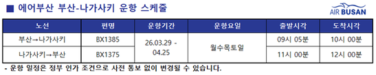 에어부산, 부산-나가사키 운항 "주 5회 확대"
