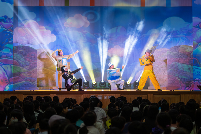 [FETV=장기영 기자] 교보생명은 오는 10월까지 경기도 소재 5개 초등학교 학생 3000여명을 대상으로 찾아가는 환경뮤지컬 ‘꼬옥이와 함께하는 두근두근 새로나 챌린지’를 선보인다. 교보생명은 사회공헌 프로그램의 일환으로 쓰레기 분리 배출 과정을 자연스럽게 익히고 환경에 대한 감수성을 키울 수 있는 공연을 진행한다. 지난 23일 경기 고양시 지축초등학교 학생들이 환경뮤지컬을 관람하고 있다. [사진 교보생명]
