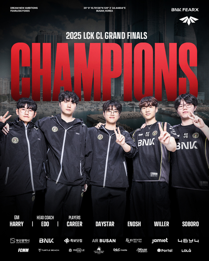 BNK FEARX는 지난 9월 리그 오브 레전드 공식 2군 리그인 2025 LCK 챌린저스 리그(CL)에서 창단 첫 우승을 달성했다. 정규 시즌 4위에서 출발해 패자조에서 반전을 일궈낸 BNK 유스팀은 젠지 글로벌 아카데미, DRX 챌린저스, T1 아카데미, KT 챌린저스를 차례로 꺾으며 이른바 ‘미라클 런’을 완성했다. 결승전 MVP는 서포터 커리어 오형석이 차지했다.