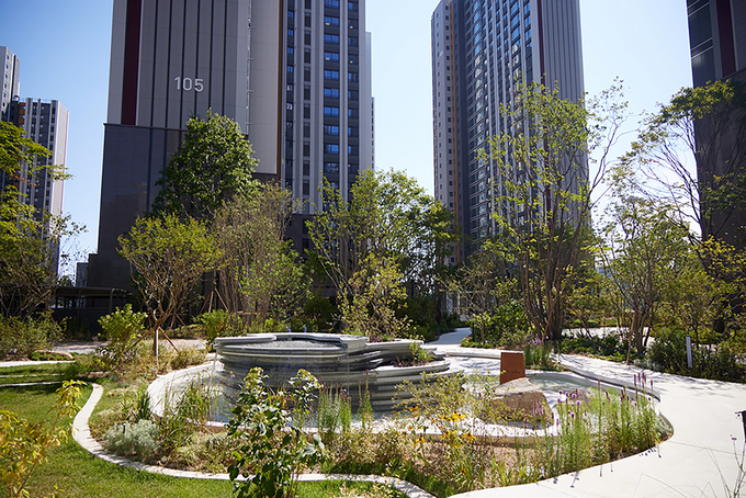 특히, 정원 중앙에 배치된 수경 시설은 유려한 곡선미와 레이어링 기법을 활용해 빛, 물, 바위 등 자연의 요소를 재해석하고 정원에 입체감을 더했다. 이를 통해 경쾌하면서도 우아한 정원의 감성 속에서 다양한 가든 라이프스타일을 제안했다.