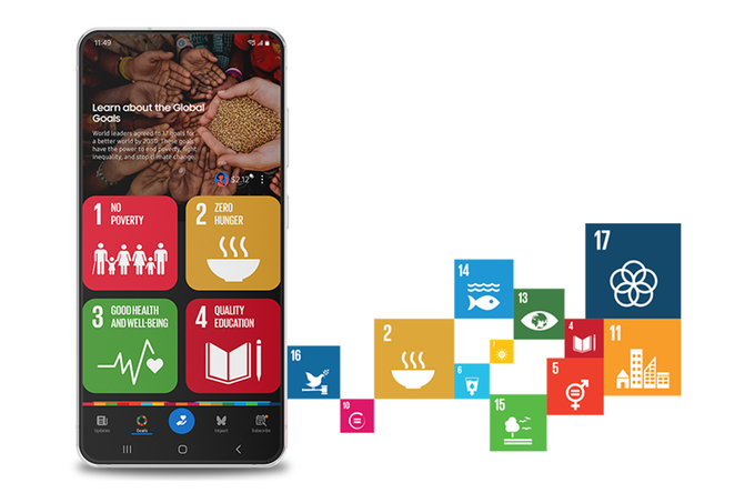 삼성전자가 유엔개발계획(UNDP)과 협력해 개발한 ‘삼성 글로벌골즈(Samsung Global Goals)’ 앱은 사용자가 ▲양질의 교육 ▲기후변화 대응 ▲깨끗한 해양 환경 조성 등 유엔의 17개 지속가능개발목표 달성에 참여할 수 있도록 설계된 플랫폼이다.