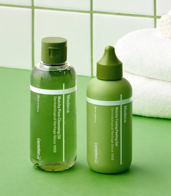 이번 신제품은 ‘마데카 말차 포어 클렌징 오일’과 ‘마데카 말차 토닝 필링 젤’이다. 2종 모두 한국 전통 발효 기법으로 두 번 발효시킨 제주 말차와 동국제약의 핵심성분 TECA(테카, 센텔라아시아티카 정량추출물)를 결합한 ‘말차-TECA’를 함유한 것이 특징이다.