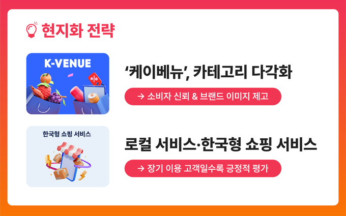 알리익스프레스의 한국 전용관 '케이베뉴' 운영과 카테고리 확장 등 현지화 정책은 고객 신뢰도와 브랜드 선호도 향상에 실질적으로 기여한 것으로 분석됐다. 배송, 교환·환불 절차 등과 맞물린 ‘로컬 서비스’와 ‘한국형 쇼핑 서비스’에 대해 장기 이용 고객일수록 긍정적으로 반응했으며, 알리익스프레스가 단순 해외직구를 넘어 한국 소비자 특화 브랜드로 진화하고 있음을 시사했다.