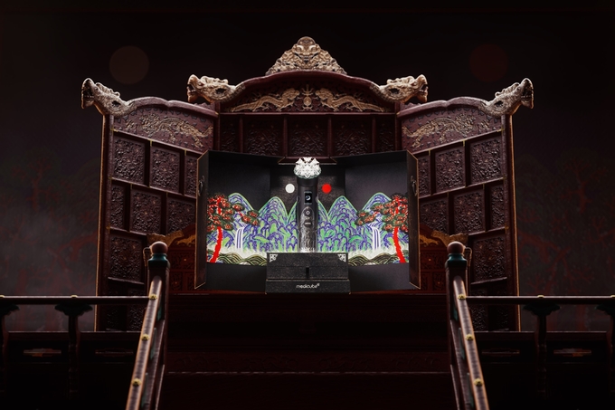 ‘부스터 프로 일월오봉도 에디션’은 에이피알이 이번 정상회의 협찬을 위해 국립중앙박물관과 협업 아래 특별 제작한 에디션이다. 박물관이 소장 중인 문화유산에서 착안해 한국 전통의 미를 뷰티 디바이스 본체와 패키지 디자인에 반영한 것이 특징이다. 먼저 디바이스 본체에는 조선시대 왕실과 태평성대를 상징하는 ‘일월오봉도’를 자개 장식풍으로 새겨 넣었으며, 패키지 내부 역시 ‘일월오봉도’로 꾸며 패키지를 펼치면 마치 부스터 프로 뒤로 병풍이 펼쳐진 것 같은 연출을 구현했다. 또 전면 LCD화면에는 경주의 대표 심볼이자 ‘신라의 미소’라 불리는 ‘경주 얼굴무늬 수막새’를 등장시켜 개최지 경주의 상징성도 더했다.