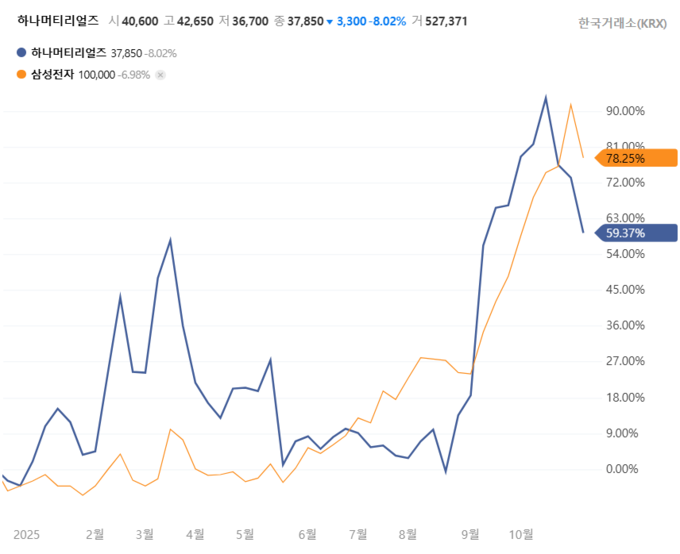 최대주주는 하나마이크론으로, 지분 약 40%를 보유하고 있다. 하나마이크론이 패키징·테스트 등 후공정을 담당하고, 하나머티리얼즈는 전공정의 식각용 실리콘 부품을 공급한다. 두 회사는 각각 삼성전자 DS(반도체)부문에 납품하며, HBM4 공정 확산에 따른 밸류체인 내 역할을 강화하고 있다.