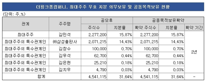 [FETV=김선호 기자] 더핑크퐁컴퍼니의 최대주주를 비롯한 특수관계인은 IPO(기업공개) 이후 지분에 대한 의무보유 대상 기간을 2년으로 확약했다. 이와 함께 공동목적보유확약서를 체결해 주주총회 안건에 대한 의결권을 공동으로 행사하기로 했다.