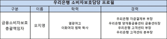 ◇우리은행 CCO 오지영 상무 내년 말 임기 만료