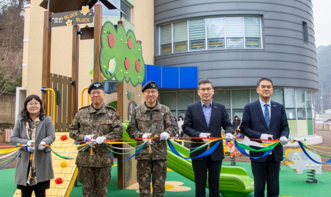 이번 지원은 격전지에서 근무하는 장병 가족들의 안정적인 보육 환경을 돕기 위한 취지로 마련됐다. 노후화된 놀이시설을 새롭게 단장해 아이들이 보다 안전하고 쾌적하게 이용할 수 있는 공간을 제공했다.