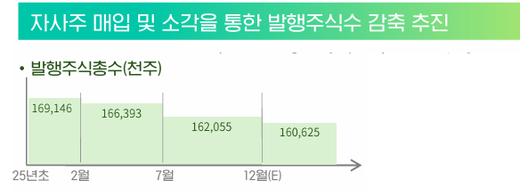 이번 이행 현황에는 자사주 소각 계획이 구체적으로 담겼다. 지난해 밸류업 계획에서는 자사주 매입 중심의 방향만 제시됐지만 이번에는 발행주식수 감축을 목표로 한 추진 현황이 명확히 제시됐다.