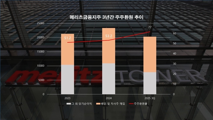 올해 3분기까지 메리츠금융의 누적 당기순이익은 2조268억원이다. 메리츠금융은 3월 5500억원의 자사주를 취득했고 8월부터 10월 말까지 6815억원을 추가로 매입했다. 메리츠금융은 올해 안으로 1조2500억원을 자사주 매입·소각에 투입할 계획이다. 여기에 주주배당까지 의결하면 올해 주주환원율도 달성할 수 있을 것으로 전망된다.