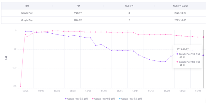 이 같은 대응 이후 매출 순위는 빠르게 반등했다. 출시 5일 차에 구글플레이 매출 5위에 올랐고 6일째는 3위, 8일 차인 10월 30일에는 2위까지 상승했다. 일시적으로 구글플레이 1위를 기록하기도 했다. 매출액의 경우 시장조사업체 센서타워에 따르면 출시 8일간 누적 매출은 약 470만달러(약 67억원), 일평균 약 8억4000만원을 기록했다.