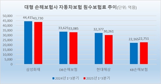회사별로는 KB손보를 제외한 3개 대형사의 원수보험료가 감소세를 나타냈다.
