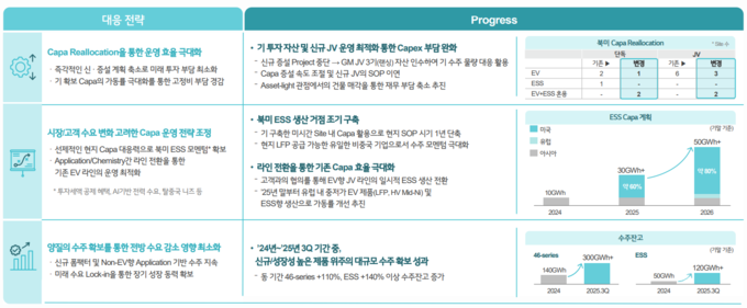 반면 포트폴리오 전환 성과는 눈에 띈다. Non-EV 비중은 10%대 중반에서 20% 안팎으로 높아졌고 중장기 40%대 목표도 가시권에 들어왔다. 46-series 기반 원통형 고객 확대가 전동화 편중을 완화했고, 북미에서는 비중국 업체 중 유일하게 LFP·고니켈·원통형을 모두 현지 생산할 수 있는 구조를 갖췄다. ESS 양산 안정화와 북미 LFP 현지화는 향후 성장 방향을 결정할 핵심 변수로 꼽힌다.