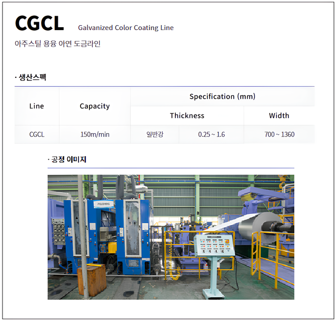 아주스틸의 CGCL 설비는 전체 매출의 14.7%에 해당하는 주요 설비 중 하나다. 이번 생산중단은 설비 업그레이드를 통한 고부가 제품 비중 확대와 경쟁력 제고를 위한 조치로 해석된다.