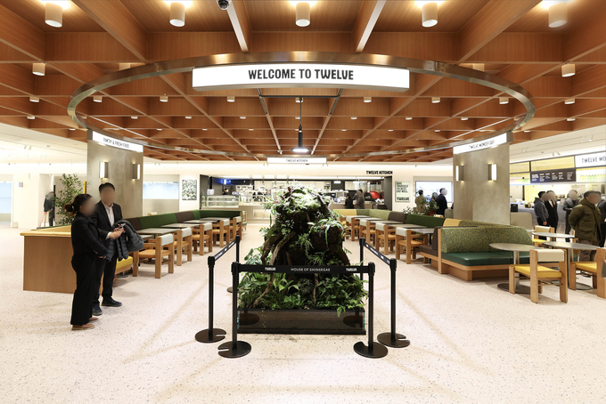 트웰브의 입구에는 ‘아고라’라 불리는 넓은 광장이 가장 먼저 펼쳐진다. 공용 테이블과 100여석 규모의 좌석을 배치해 도심 속 라운지처럼 편안하게 머물 수 있도록 구성했다. 인접한 델리와 스무디바까지 자연스럽게 이어지는 동선으로 먹고 쉬고 쇼핑하는 모든 경험이 하나의 흐름으로 연결된다.