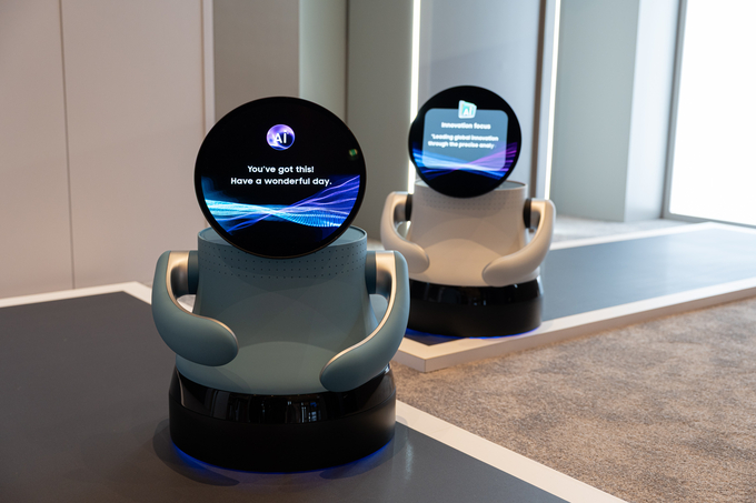얼굴 부위에 13.4형 OLED를 탑재한 ‘AI OLED 봇’은 AI 기반으로 사용자와 상호작용하는 소형 로봇 콘셉트다. 전시에서는 대학 강의실에서 학생을 지원하는 로봇 조교로 구현돼 강의실 위치 안내, 교수 정보 제공, 과제·휴강 정보 확인 등의 기능을 수행한다. 음성 사용이 제한된 환경에서도 디스플레이를 통해 정보 전달이 가능하다는 점을 강조했다.