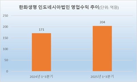 12일 한화생명에 따르면 인도네시아법인의 지난해 1~3분기(1~9월) 영업수익은 204억원으로 전년 동기 171억원에 비해 33억원(19.3%) 증가했다.