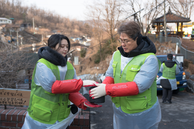 [FETV=장기영 기자] DB손해보험은 지난 10일 서울 서대문구 개미마을 일대에서 취약계층을 위한 연탄 배달 봉사활동을 실시했다. 정종표 사장을 비롯한 DB손보 임직원과 가족 등 200여명은 이날 마을에 후원한 연탄 2만2300장 중 5400장을 직접 배달했다. 정 사장(오른쪽)이 직원과 함께 연탄을 옮기고 있다. [사진 DB손해보험]