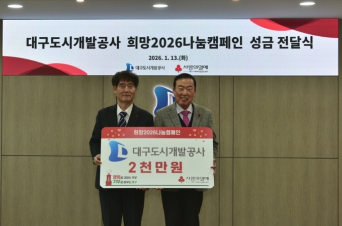 [FETV=박원일 기자] 대구도시개발공사는 지난 13일 사회복지공동모금회가 주관하는 '희망 2026 나눔캠페인'에 성금 2000만원을 기탁했다고 14일 밝혔다.