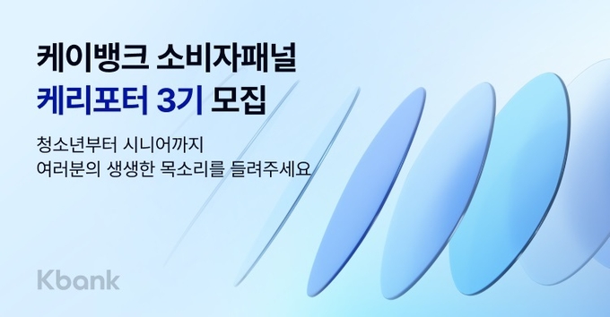 [FETV=권현원 기자] 케이뱅크는 금융소비자 목소리를 케이뱅크에 반영하기 위한 소비자패널 ‘케리포터’ 3기를 모집 중이라고 26일 밝혔다.