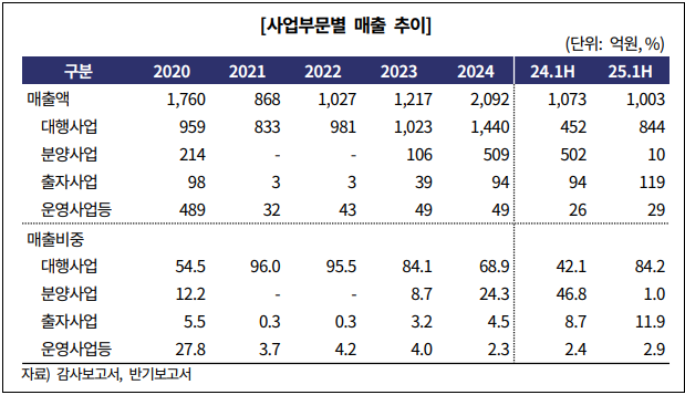 이러한 재무제표 개선은 실적에도 반영됐다. 강원개발공사는 2023년 영업이익 39억원 당기순이익 89억원을 기록하며 흑자로 전환했다. 이후 실적 성장세는 지속돼 2025년 상반기 기준 매출 1003억원, 영업이익 121억원을 기록했다. 다만 이러한 실적 개선에도 불구하고 사업 체질 개선은 여전히 과제로 남아 있다. 최근 재무 개선과 그에 따른 실적 성장의 핵심은 지속적인 수익 창출이 아니라 자산 매각과 출자를 기반으로 형성됐기 때문이다.