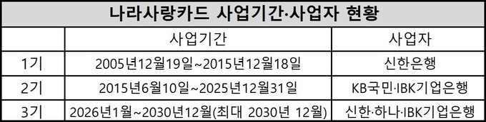 현재 KB국민은행은 나라사랑카드 사업자 역할을 수행하고 있지는 않다. KB국민은행은 앞서 나라사랑카드 2기 사업에서는 사업자로 선정돼 사업을 추진해 왔으나 3기 사업자 선정에서는 탈락했다.
