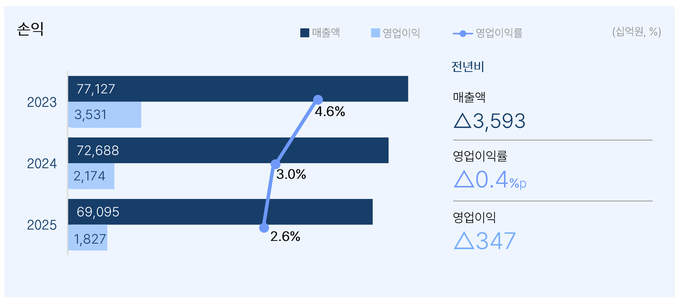 이차전지소재부문은 포스코퓨처엠이 리튬 가격 약세에도 전년 수준의 수익성을 유지했다. 다만 포스코아르헨티나 등 2024년 말 준공된 신규 공장들이 상업 생산을 개시하며 초기 가동비용이 선제적으로 일시 반영됐다. 연결 영업이익은 지표상 하락했으나 가동 안정화에 따라 수익성 하락 요인을 빠르게 해소할 계획이다.
