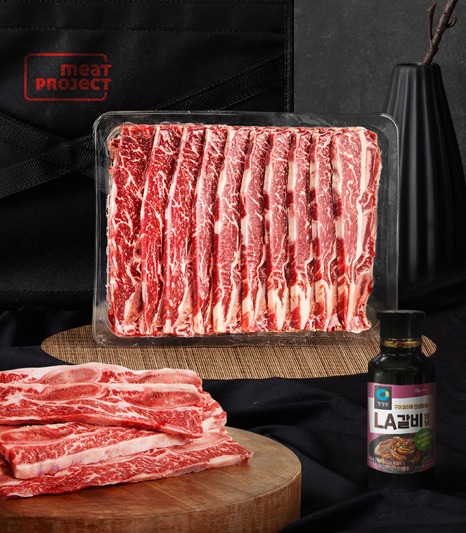 먼저 명절 때마다 조기 완판을 기록하며 미트프로젝트의 대표 스테디셀러로 자리매김한 ‘LA 꽃갈비세트(1.8㎏)’를 선보인다. 갈비 부위 중 마블링이 가장 풍부해 부드러운 육질과 진한 육즙이 특징인 6·7·8번 꽃갈비만 선별했고, 미국산 원육 중에서도 최상위 등급만 사용했다. 여기에 국산 과일을 넣어 만든 ‘청정원 LA 갈비양념’을 함께 증정한다.