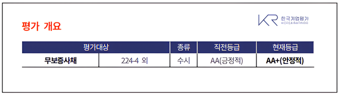 지난 29일 한국기업평가는 SK하이닉스의 224-4 외 무보증사채의 신용등급을 기존 AA(긍정적)에서 AA+(안정적)으로 상향했다.