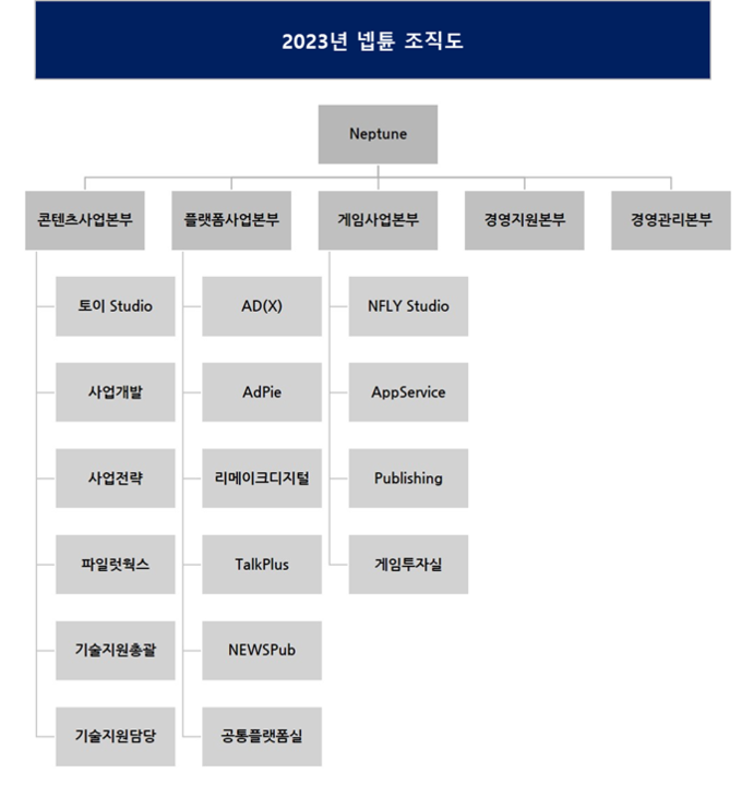 특히 플랫폼 부문을 '플랫폼사업본부'로 격상시키며 강화했다. 이곳에는 AD(X), 애드파이(AdPie), 토크플러스 등 넵튠의 핵심 광고 솔루션 유닛들이 통합 배치했다.