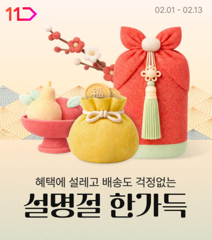 [FETV=김선호 기자] 11번가(www.11st.co.kr)가 총 800만개에 달하는 역대 최대 규모의 명절 특가 상품을 한자리에 모은 ‘2026 설명절 한가득’ 프로모션을 오는 13일까지 진행한다.