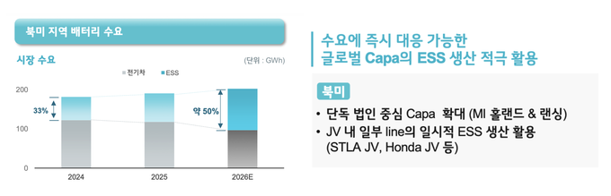 ESS 생산 라인의 활용도도 높였다. 북미 ESS 생산 거점을 미시간 홀랜드 공장으로 조정해 양산 시점을 앞당겼다. 폴란드 공장과 북미 합작법인(JV)의 EV 유휴 라인을 ESS 생산으로 전환하는 등 생산 라인을 적극 활용했다.