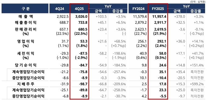 지난해 개발사업 4Q 매출은 운영 사업장 업황 회복 등으로 11.4% 신장한 89억원, 영업이익은 마이너스(-) 50억원으로 적자 폭 180억원을 개선했다. 자회사가 포함된 공통 및 기타 부문의 2025년 4분기 매출은 19.1% 감소한 455억원, 영업이익은 수익성 제고를 통해 마이너스(-) 4억원을 기록했다.