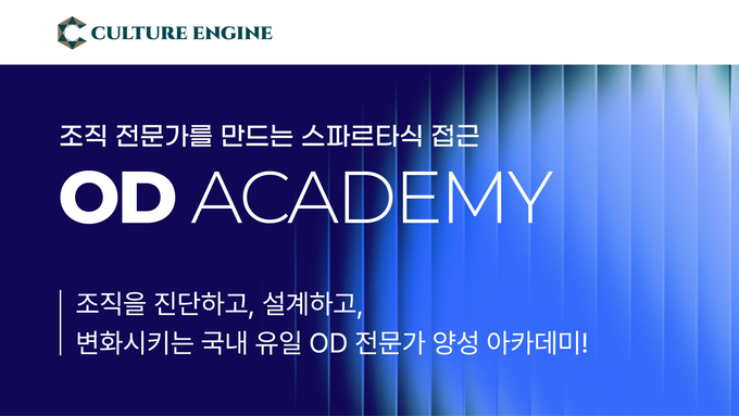 이러한 문제의식 속에서 출범한 OD아카데미는 조직문화 전문기업 컬쳐엔진(Culture Engine)이 운영하는 전문 교육 과정으로, OD를 단순한 실무 영역이 아닌 전문가 커리어 트랙으로 육성하는 것을 목표로 한다. 컬쳐엔진은 공공기관·대기업·중견기업을 포함한 다양한 조직을 대상으로 조직진단과 변화관리 프로젝트를 수행해 온 조직개발 전문 기관으로, 현장 기반 OD 방법론을 축적해 왔다.