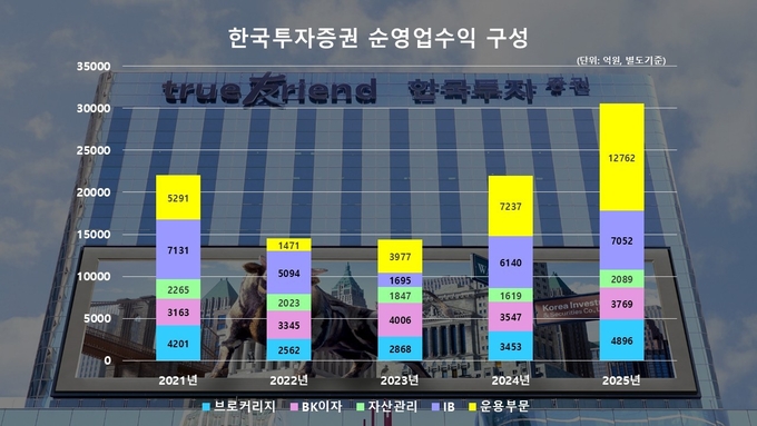 특히 운용 부문이 성장을 주도했다. 2024년 7237억원이었던 운용 부문 수익은 지난해 1조2762억원으로 76.3% 증가하며 실적을 견인했다. 배당금 및 분배금 수익이 2024년 3691억원에서 지난해 5523억원으로 49.6% 올랐으며 발행어음 잔고도 2024년 17조3000억원에서 지난해 21조5000억원으로 약 24.0% 늘어났다.