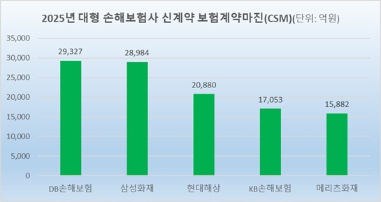 DB손보는 지난해 신계약 CSM 감소에도 불구하고, 유일하게 2조9000억원을 웃돌아 1위를 차지했다.