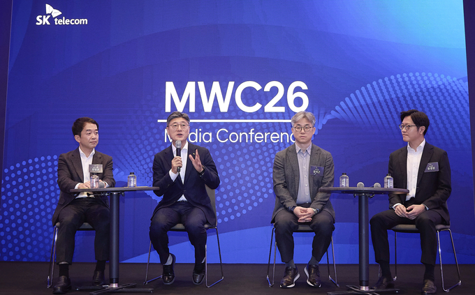 정 CEO는 1일(현지시간) 스페인 바르셀로나에서 열린 MWC26 기자간담회에서 AI 인프라 재편과 대규모 투자 계획을 담은 ‘AI 네이티브’ 전략을 발표했다.