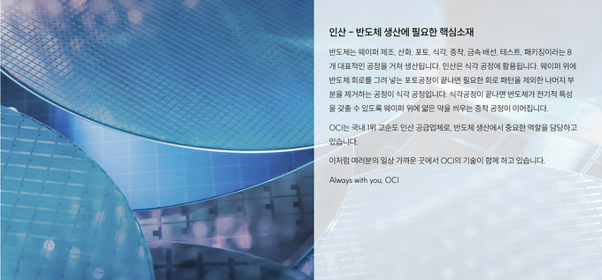 실제로 OCI는 최근 반도체 소재 사업 확대를 주요 전략으로 제시하고 있다. 김유신 OCI홀딩스 부회장은 올해 초 컨퍼런스콜에서 반도체용 인산과 에천트 제품 양산 확대 등 반도체 소재 사업 강화 계획을 언급했다. 지난 2024년 군산 공장에서 착공을 시작한 SiH4(실란) 기반 소재 사업 역시 이차전지와 반도체 소재 확장 전략과 연결되는 사업으로 평가된다.