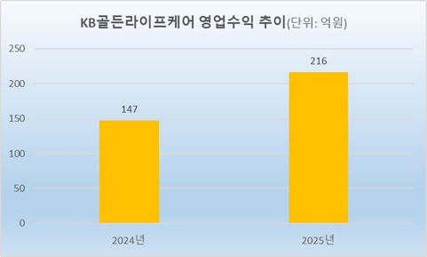 20일 KB라이프가 공시한 ‘2025년 사업보고서’에 따르면 KB골든라이프케어의 지난해 영업수익은 216억원으로 전년 147억원에 비해 69억원(46.9%) 증가했다.