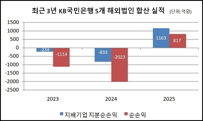 해외법인 흑자전환에는 KB뱅크 인도네시아의 실적 개선 영향이 컸다. KB뱅크 인도네시아는 2024년 2409억6800만원의 적자를 기록한 데 이어 지난해 연간 실적 역시 683억2500만원의 순손실을 기록했으나 적자폭 자체는 크게 줄였다.