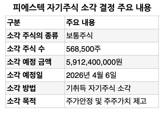 [FETV=심수진 기자] 피에스텍이 23일 주가 안정과 주주가치 제고를 위해 자사주 소각을 결정했다고 밝혔다.