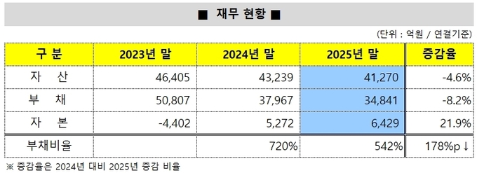 재무지표 역시 점진적인 개선 흐름을 보이고 있다. 한때 1000%를 넘었던 부채비율은 최근 500%대까지 낮아졌고 차입 규모도 꾸준히 줄어드는 추세다. 매출은 감소했지만 원가 절감과 비용 구조조정 영향으로 영업이익은 오히려 증가했다.