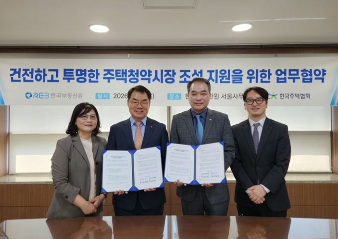 [FETV=박원일 기자] 한국부동산원(부동산원)은 2일 부동산원 서울사무소에서 한국주택협회(주택협회)와 ‘건전하고 투명한 주택 청약 시장 조성 지원을 위한 업무협약’을 체결했다고 이날 밝혔다.