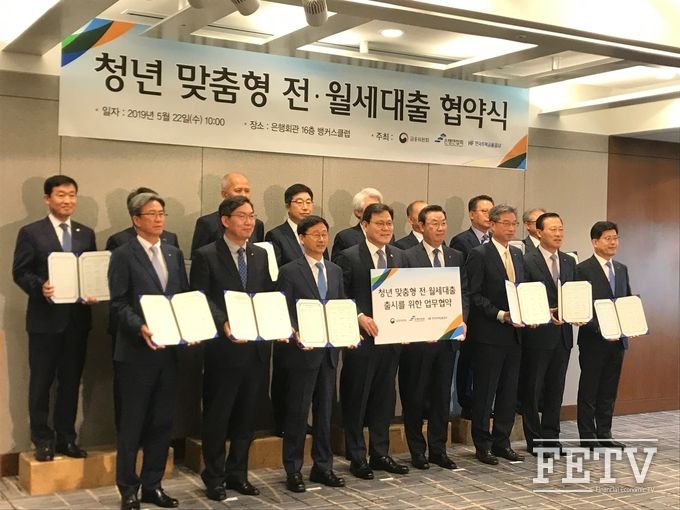 금융위원회는 22일 중구 명동 은행회관에서 시중은행 및 주택금융공사와 함께 '청년 맞춤형 전·월세 대출 협약식'을 열었다.