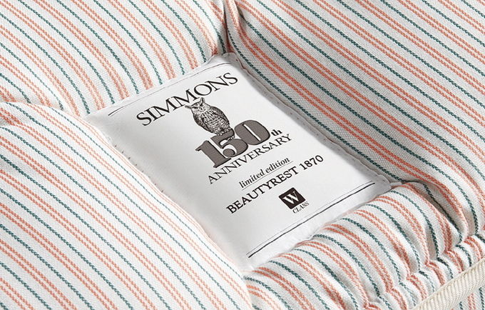 한국 시몬스의 독보적인 매트리스 설계 노하우와 장인정신을 집약한 ‘뷰티레스트 1870’ 매트리스는 올해 시몬스 브랜드 창립 150주년을 맞아 이를 기념해 1,870개 한정 수량으로 제작됐다. 시몬스의 핵심 기술인 포켓스프링, 내장재뿐만 아니라 1900년대 시몬스 매트리스 원단의 패턴, 색상, 감촉 등을 재해석해 탄생한 것이 특징이다.