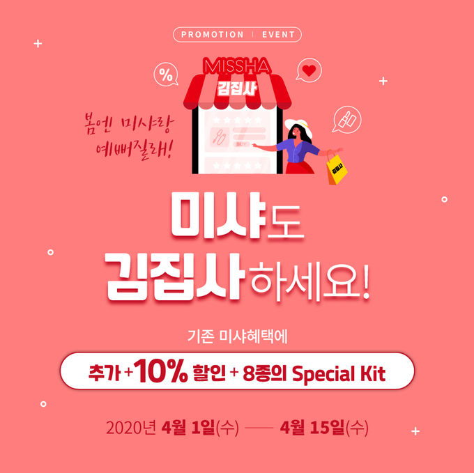 [FETV=김윤섭 기자] 에이블씨엔씨 화장품 브랜드 미샤는 생활밀착형 O2O(온·오프라인 연동) 서비스 김집사와 손잡고 배달 서비스를 시작했다고 1일 밝혔다.