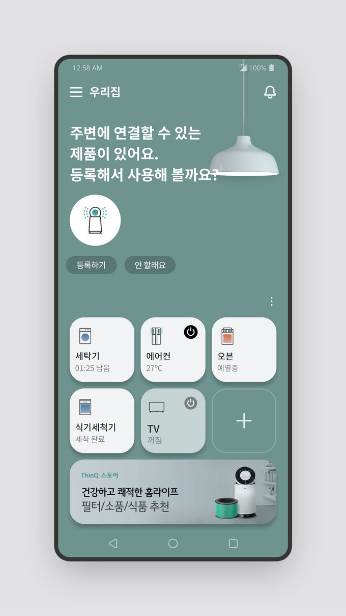 또 LG 씽큐 앱은 자동으로 가전을 컨트롤하며 집 안을 최적의 상태로 관리할 수 있도록 한다. 고객이 귀가할 때 미리 공기청정기나 에어컨 등을 동작시키거나 고객이 외출할 때는 집 안에 켜 놓은 에어컨을 끄고 로봇 청소기를 동작시키는 등 다양한 고객 맞춤형 설정이 가능하다.